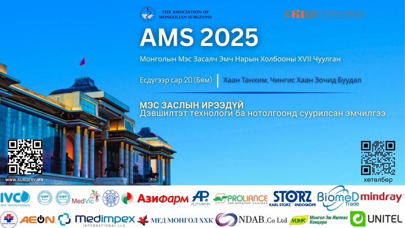 Энэ удаагийн Монголын мэс заслын эмч нарын чуулга уулзалтыг 2025 оны 09-р сарын 20-нд “МЭС ЗАСЛЫН ИРЭЭДҮЙ: Дэвшилтэт технологи ба нотолгоонд суурилсан эмчилгээ” сэдэв дор Олон улсын хэмжээнд зохион байгуулах гэж байгаа тул Та бүхнийг хамтран ажиллахыг урьж байна.